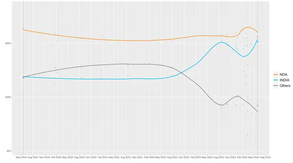 La politique indienne poursuit en 2024 sa tendance à la bipolarisation au sein de deux coalitions majeures, l'Alliance nationale démocratique (NDA) au pouvoir, et le principal bloc d'opposition, l'Alliance inclusive de la nation indienne pour le développement (INDIA). Malgré un grand nombre de partis en lice, à l'intérieur comme en dehors de ces deux coalitions, ceux ci sont généralement essentiellement régionaux. Seuls six partis véritablement nationaux présentent en effet des candidats dans l'ensemble ou presque du pays : le Bharatiya Janata Party, le Congrès national indien, le Parti communiste indien, le Parti populaire national, le Parti Aam Aadmi et le Bahujan Samaj Party. A l'exception de ce dernier, tous font partie de la NDA ou de l'INDIA.