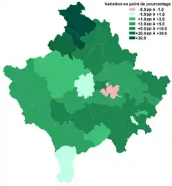 La Liste Serbe pour le Kosovo est également accusée de triche suite une augmentation de la participation spectaculaire dans plusieurs communes à majorité serbe (+ 38,6 points à Leposaviq, + 30,13 points à Zveçan, + 26,59 points à Zubin Potok et + 22,32 points à Mitrovica (nord)), contre une augmentation moyenne nationale de + 4,30 points[65].