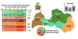 - ↑ Comparé aux résultats de l'Association Lettonne des Régions, qui fait désormais partie de la coalition