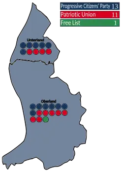 Le scrutin entraîne une alternance après la victoire du Parti progressiste des citoyens qui remporte la majorité absolue à l'assemblée. Le Premier ministre Mario Frick (UP) cède la place à Otmar Hasler (PPC)[3],[5].