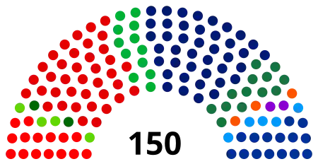 | 150 sièges de la Seconde Chambre (Majorité absolue : 76 sièges) | ||||||||||||||