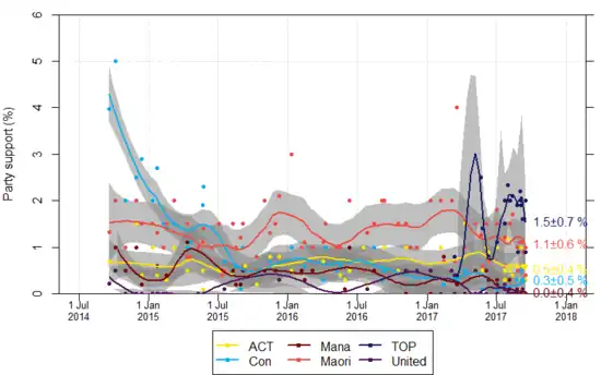 - ↑ (en) « Latest poll shows National-Labour gap still tightening », sur Radio New Zealand, .