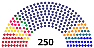 | 250 sièges de l'Assemblée nationale (majorité absolue : 126 sièges) | ||||||||||||||