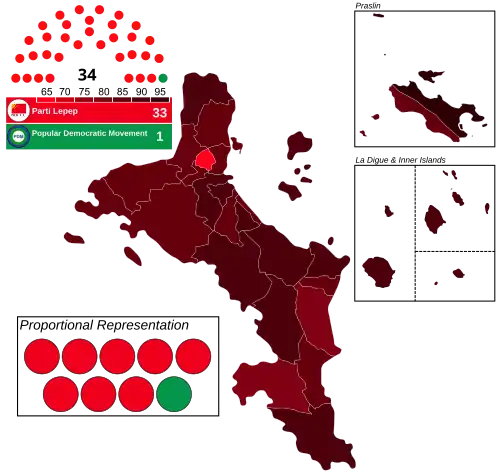 | Parti Lepep | 31 123 | 88,56 | 25 | 8 | 33 | |||||||||