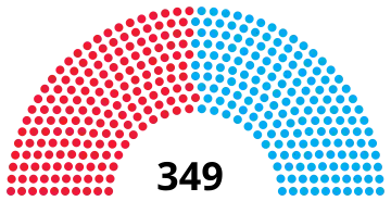 Le Riksdag est composé de 349 sièges pourvus pour quatre ans au scrutin proportionnel plurinominal[16]. La Suède possède la particularité d'avoir des élections à dates fixes combinées à un régime parlementaire dans lequel des élections anticipées peuvent être convoquées. Dans ce dernier cas, la législature nouvellement élue ne l'est que pour le restant du mandat de quatre ans entamé par la législature précédente. Des élections législatives sont par conséquent organisées quoi qu'il arrive le second dimanche du mois de septembre à intervalles de quatre ans, en même temps que les élections municipales et régionales[17].