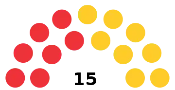 | 15 sièges de l'Assemblée (Majorité absolue : 8 sièges) | ||||||||||||||