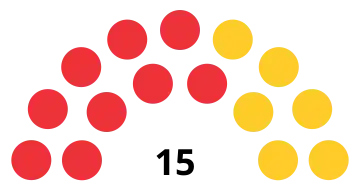 | 15 sièges de l'Assemblée (Majorité absolue : 8 sièges) | ||||||||||||||