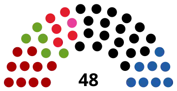 | 48 sièges du conseil municipal (Majorité absolue : 25 sièges) | ||||||||||||||
