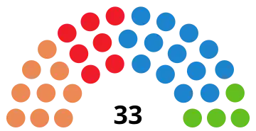 Le nombre de conseillers municipaux est établi en fonction de la population de la commune[3]. Les communes de plus de 100 001 habitants comptent 25 conseillers et un conseiller supplémentaire pour 100 000 habitants ou fraction, ainsi qu'un conseiller supplémentaire si le total de conseillers municipaux constitue un nombre pair. Valence comptant officiellement 792 492 habitants recensés à la fin de l'année [4], elle dispose de 33 conseillers municipaux.