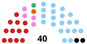 | 40 sièges du conseil régional (Majorité absolue : 21 sièges) | ||||||||||||||