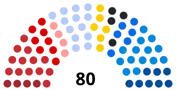 | 80 sièges du conseil régional (Majorité absolue : 41 sièges) | ||||||||||||||