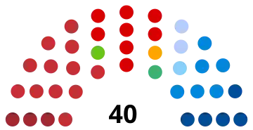 | Partis | Votes | % | +/- | S. | +/- | Coalition | ||