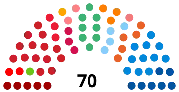 | 70 sièges du conseil régional (Majorité absolue : 36 sièges) | ||||||||||||||