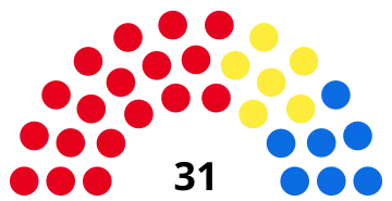 La liste du président élu reçoit d'emblée une prime majoritaire portant sa part des sièges à un nombre compris entre 60 et 65 % du total. Les sièges sont ensuite repartis à la proportionnelle aux différentes listes ayant franchi le seuil électoral, et à leurs candidats en fonction des votes préférentiels qu'ils ont recueillis. Le seuil de 4 % est abaissé à 2 % pour les listes se présentant au sein d'une coalition. Par ailleurs, le président élu ainsi que le candidat arrivé en seconde position deviennent de droit membres du conseil, ce qui porte le total de conseillers à 31.
