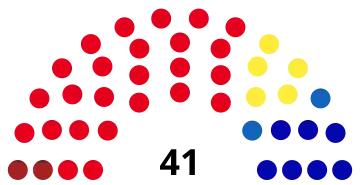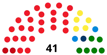 La liste du président élu reçoit d'emblée une prime majoritaire portant sa part des sièges au minimum à la majorité absolue du total. La liste reçoit ainsi 24 sièges si elle est arrivée en tête au second tour, ou au premier avec plus de 45% des suffrages. La prime descend à 23 sièges si la liste a obtenu entre 40 et 45%. Les sièges restants sont ensuite répartis à la proportionnelle aux différentes listes ayant franchi le seuil électoral, et à leurs candidats en fonction des votes préférentiels qu'ils ont recueillis. Le seuil de 5% est abaissé à 3% pour les listes se présentant au sein d'une coalition, mais à la condition que celle-ci ait atteint un seuil relevé à 10%[4]. Par ailleurs, le président élu devient de droit membre du conseil, ce qui porte le total de conseillers à 41[2].