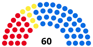 La liste du président élu peut recevoir d'emblée une prime majoritaire égale à la moitié des sièges si celui ci réunit au moins 25 % des suffrages. La prime monte à 55 % des sièges pour un résultat entre 25 et 40 % des voix, et à 60 % s'il réunit plus de 40 % des voix. Les sièges restants sont ensuite repartis à la proportionnelle entre les différentes listes ayant franchi le seuil électoral, et à leurs candidats en fonction des votes préférentiels qu'ils ont recueillis. Le seuil de 5 % est élevé à 10 % pour les listes se présentant au sein d'une coalition. Par ailleurs, le candidat à la présidence arrivé en seconde position devient de droit membre du conseil, ce qui porte à 60 le total de conseillers[ 1] .
