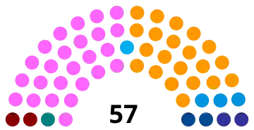 | 57 députés de l'Assemblée législative (Majorité absolue : 29 députés) | ||||||||||||||