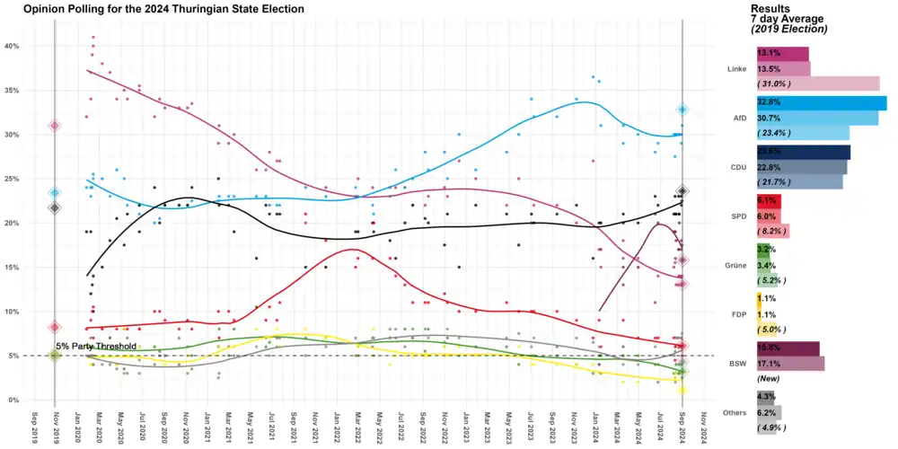 - ↑ (de) « Umfragen Thüringen (#ltwth) », sur wahlrecht.de (consulté le ).
