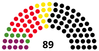 | Année | Participation | Hémicycle | Parti en tête | Score | Sièges | Ministre-président | Parti | ||