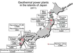 - ↑ (en) « Japan taps into power of volcanoes with geothermal energy plants », The Daily Telegraph,