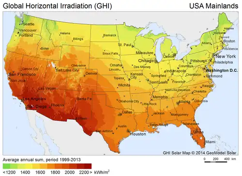 - ↑ (en) California first state to generate more than 5% of electricity from utility-scale solar, EIA, 24 mars 2015.