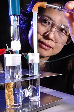 - ↑ M. Carmo, D.L. Fritz, J. Mergel et D. Stolten, « A comprehensive review on PEM water electrolysis », International Journal of Hydrogen Energy, vol. 38, no 12, , p. 4901–4934 (DOI 10.1016/j.ijhydene.2013.01.151).