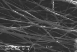 - ↑ Thandavamoorthy Subbiah, G. S. Bhat, R. W. Tock, S. Parameswaran et S. S. Ramkumar, « Electrospinning of nanofibers », Journal of Applied Polymer Science, vol. 96, no 2, , p. 557–569 (DOI 10.1002/app.21481)