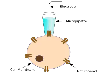 Une autre méthode permettant d'accéder au potentiel électrique interne à la cellule est l'utilisation d'électrodes « sharp », électrodes en verre de très fin diamètre qui traversent la membrane cellulaire.