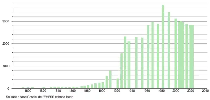 - ↑ Fiches Insee - Populations de référence de la commune pour les années 2006, 2007, 2008, 2009, 2010, 2011, 2012, 2013, 2014, 2015, 2016, 2017, 2018, 2019, 2020, 2021 et 2022.