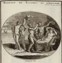 Mariage de Bacchus et Ariane. Illustration reprise dans L’Antiquité expliquée de Bernard de Montfaucon (1719).