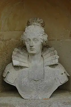 Les négociations en vue d'un mariage constituaient un élément clé de la politique étrangère d'Élisabeth Ire[62]. Elle refusa la main de Philippe II d'Espagne en 1559 et négocia pendant plusieurs années pour épouser son cousin Charles II d'Autriche-Styrie. En 1569, les relations avec les Habsbourg s'étaient détériorées, et Élisabeth Ire envisagea d'épouser un prince français de la maison de Valois, Henri d'Anjou, puis son frère François d'Anjou, de 1572 à 1581[63]. Cette dernière union était associée à une promesse d'alliance contre l'Espagne, pour l'évincer des Pays-Bas méridionaux[64]. Élisabeth Ire sembla prendre cette possibilité au sérieux et elle porta un temps des boucles d'oreille en forme de grenouille que le duc d'Anjou lui avait envoyées[65].