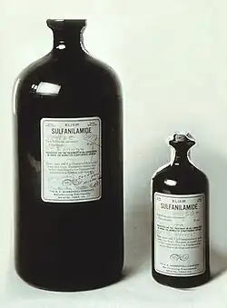 L'Elixir sulfanilamide était un antibiotique sulfamidé mal préparé qui a causé un empoisonnement de masse aux États-Unis en 1937. Il a causé la mort de plus de cent personnes. Le tollé général causé par cet incident et d’autres catastrophes similaires a conduit à l’adoption de la loi fédérale de 1938 sur les aliments, les médicaments et les cosmétiques, qui a considérablement augmenté les pouvoirs de la Food and Drug Administration pour réglementer les médicaments.