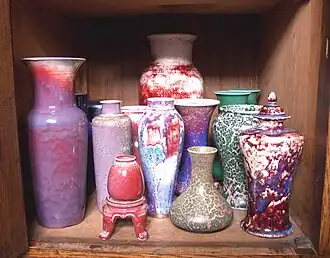 - Alain Fichot, travaillant sur les changements d'atmosphère lors de la diminution de la température, a obtenu des rouges de cuivre cristallisés.