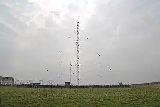Après sabotage par les Allemands pendant la Seconde Guerre mondiale, l'émetteur repart en 1945. Les pylônes mesurent désormais 73 m.