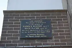 - ↑ (en) The circumstances of the deaths of Patrick Rooney, Hugh McCabe, Samuel McLarnon and Michael Lynch in Belfast on 15 August 1969 [« Les circonstances de la mort de Patrick Rooney, Hugh McCabe, Samuel McLarnon et Michael Lynch à Belfast le 15 août 1969 »], Police Ombudsman for Northern Ireland, (lire en ligne [PDF]), p. 118–119