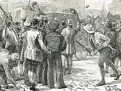 L'itinéraire de l'entrée dans la ville du juge Wetherell est modifié pour des raisons de sécurité mais il est rapidement reconnu, et une foule se presse à son arrivée le 29 octobre[2],[12]. La voiture transportant Wetherell et Pinney est lapidée. Ils cherchent refuge à la Mansion House. La violence s'intensifie, en particulier après que les gendarmes spéciaux aient lancé plusieurs charges contre la foule, dont l'une cause la mort d'un manifestant[12]. Dragons et agents de police divergent sur les mode de répression[14]. Pinney s'adresse à la foule pour reprendre le contrôle de la situation, mais estime qu'il n'a plus d'autre choix que de lire le Riot Act en fin de journée, à un moment où de nombreux agents spéciaux ont abandonné leurs postes[2],[12].