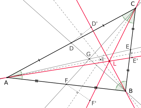 - ↑ (de) K. Weisse, « Zur Geschichte des Lemoineschen Punktes », Beiträge zur Geschichte, Philosophie und Methodologie der Mathematik (Wiss. Z. Greifswald. Ernst-Moritz-Arndt-Univ. Math.-Natur. Reihe), vol. 38, no 4, , p. 73-4