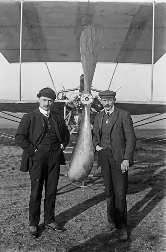En 1910, il est photographié sur une des plages de la Baie de Somme sur un monoplan Caudron Frères[1].