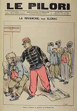 Courageux, voire téméraire, Zola s'attaque avec dureté aux ténors de l'Assemblée comme Albert de Broglie ou Gabriel de Belcastel. Il vilipende une Chambre peureuse, réactionnaire, « admirablement manipulée par Thiers[26] ». De à , il produit des chroniques parlementaires sous le titre de La République en marche, publiées dans La Cloche et le Sémaphore de Marseille[27]. Elles lui permettent à la fois de se faire connaître du monde politique et d'y fonder de solides amitiés (et inimitiés). Il collecte aussi une foule de détails qu'il utilisera par la suite dans ses romans[28]. Ces engagements sont quelque peu risqués pour l'écrivain. Il tombe deux fois sous le coup de la loi[26]. Mais ces ennuis judiciaires n'ont pas de conséquences et il est chaque fois libéré le jour même.