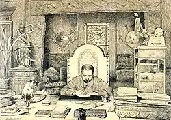 Par ailleurs, il est présenté à la Société des gens de lettres par Alphonse Daudet en 1891 et accueilli en son sein « exceptionnellement par acclamation et à main levée à l'unanimité ». Il est élu au comité, puis élu et réélu président de l'association de 1891 à 1900. Il exerce très sérieusement ses fonctions : il intervient dans la presse pour présenter son organisation et ses valeurs[53], il fait reconnaître la société comme établissement d'utilité publique, le droit de la propriété littéraire et la défense des auteurs en France progressent sous son autorité, des conventions sont signées avec des pays étrangers, comme la Russie[54].