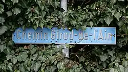 - 1 2 « Chemin GIROD-DE-L'AIN », Noms géographiques du canton de Genève, sur ge.ch (consulté le ) ; cette source donne comme origine « Émilie Girod-de-l'Ain, 1801-1881 ».