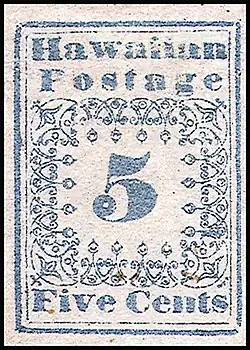 Trois valeurs sont émises le : 2 cents, 5 cents et 13 cents. Le courrier circulant à l'intérieur de l'archipel étant distribué gratuitement jusqu'en 1859, les Missionnaires servent sur le courrier pour l'étranger ou en provenance de l'étranger : 2 cents pour les journaux, 5 cents pour le transport maritime d'une lettre, 13 cents assurait le transport jusqu'aux États de la Côte Est des États-Unis[1]. Pour ce dernier type de courrier, un timbre à date rouge signalait que le port était payé pour la traversée des États-Unis : « U.S. Postage Paid »[2].