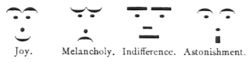 Quatre émoticônes typographiques verticales ont été publiées en 1881 par le magazine satirique américain Puck, l'intention déclarée du service de typographie de cette publication étant de « présenter ... tous les dessinateurs ayant jamais existé ».