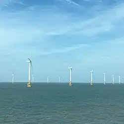 En 2019, la puissance installée des parcs éoliens en mer chinois atteignait 6 936 MW, au 3e rang mondial de l'éolien en mer derrière le Royaume-Uni (9 723 MW) et l'Allemagne (7 491 MW)[15].