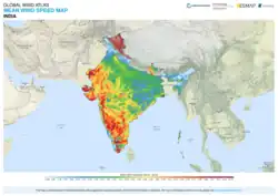 L'Inde est dotée d'un littoral de 7 600 km. Le NIWE estime le potentiel éolien à 302 GW à 100 mètres et 695,5 GW à 120 mètres de hauteur de moyeu. Plus de 95 % des ressources éoliennes commercialement exploitables sont concentrées dans sept États[3].