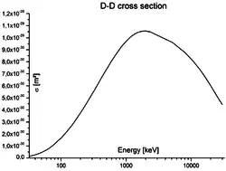 La section efficace d'une réaction, notée σ, est une mesure de la probabilité qu'une réaction se produise. Elle dépend de la vitesse relative entre les deux noyaux. Dans le cas de la fusion, des vitesses relatives plus élevées augmentent généralement la probabilité, mais elle recommence à diminuer aux énergies très élevées[5].