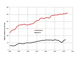 | Production | pétrole : 1,9 gaz naturel : 1,3 charbon : 5416,4 bois : 244,7 |