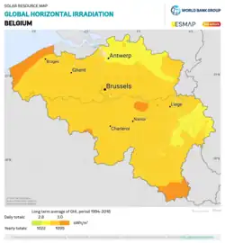 - ↑ Map and data downloads - Belgium, Global Solar Atlas.
