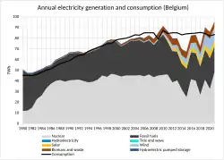- 1 2 (en) Energy Statistics Data Browser - Electricity generation by source, Belgium, 1990-2023, Agence internationale de l'énergie, consulté le 20 juin 2025.