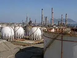 Cheminée de la raffinerie de Petronor (Biscaye), une des principales d'Espagne[1] ; le pétrole est de loin la principale énergie utilisée en Espagne. | |